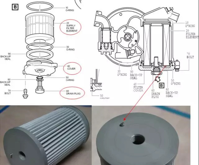 1、潤(rùn)滑組件供油濾濾芯(PN:QA06647ISS4或者CA00077A,見下圖片20)的下表面上有一個(gè)圓柱形銷釘,作用是固定濾芯,防止其轉(zhuǎn)動(dòng)。